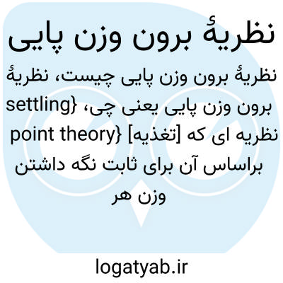 {settling point theory} [تغذیه] نظریه ای که براساس آن برای ثابت نگه داشتن وزن هر فرد باید رژیم غذایی و الگوهای تغذیه ای و سطح فعالیت بدنی وی را پایش کرد