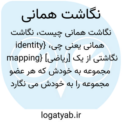 {identity mapping} [ریاضی] نگاشتی از یک مجموعه به خودش که هر عضو مجموعه را به خودش می نگارد