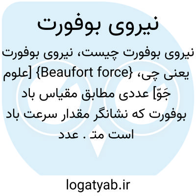 {Beaufort force} [علوم جَوّ] عددی مطابق مقیاس باد بوفورت که نشانگر مقدار سرعت باد است متـ. عدد بوفورت Beaufort number