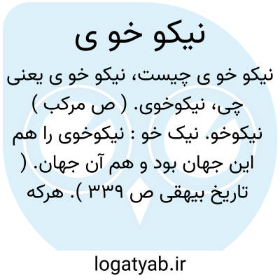 نیکوخوی. ( ص مرکب ) نیکوخو. نیک خو: نیکوخوی را هم این جهان بود و هم آن جهان. ( تاریخ بیهقی ص 339 ). هرکه از تو نیکوخوی تر از تو صوفی تر. ( کیمیای سعادت ). شاهی بود... بذله گوی نیکوخوی. ( سمطالعلی ص 35 ).