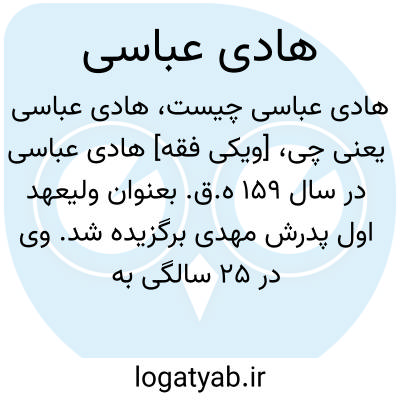 چهارمین خلیفۀ عباسی (حک: ۱۶۹ـ۱۷۰ق). هادی به هنگام حکومت پدرش، مهدی، در ری به دنیا آمد و به فرمان وی، به جنگ وَنْداد هُرْمُز و شِروین، صاحبان طبرستان، رفت و در آن جا بود که با مرگ پدر به خلافت انتخاب شد و برادرش هارون برای او بیعت گرفت. براثر اعمال نسنجیدۀ وی و بی تدبیری هادی، اوضاع مملکت اسلامی آشفته شد و گروهی از علویان به خروش آمدند؛ زیرا وی به تعقیب آنان پرداخت و آنچه مهدی مقرر کرده بود، قطع کرد و فرمان داد تا آن ها را دستگیر و نزد او گسیل کنند. این امر به قیام حُسین بن علی بن حَسن (شهید فَخّ ) از نوادگان امام مجتبی (ع ) انجامید که با هجوم سپاه خلیفه، حسین در ناحیۀ فَخّ (نزدیکی مکه ) با گروهی از علویان به شهادت رسید (ذیحجۀ ۱۶۹ق). هادی در نظر داشت هارون را از ولایتعهدی خلع و فرزندش، جعفر، را ولیعهد کند. به این سبب، یَحیی بن خالد بَرْمَکی، مربی هارون، را به زندان انداخت. هادی، مانند پدرش، زنادقه را قلع و قمع کرد و بسیاری از آنان را کشت. گفته اند مادرش خِیزَران او را مسموم کرد؛ زیرا هادی دست وی را از مداخله در امور سیاسی کوتاه کرده بود.