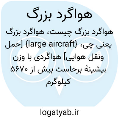 {large aircraft} [حمل ونقل هوایی] هواگَردی با وزن بیشینۀ برخاست بیش از 5670 کیلوگرم