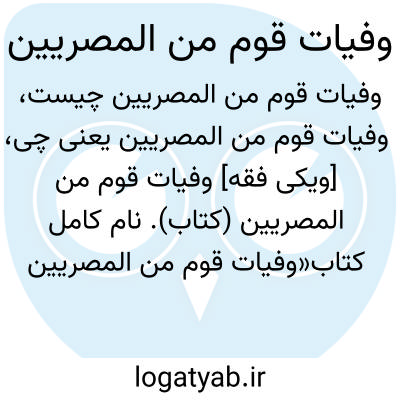 [ویکی فقه] وفیات قوم من المصریین (کتاب). نام کامل کتاب«وفیات قوم من المصریین و نفر سواهم» تالیف ابی اسحاق ابراهیم بن سعید بن عبدالله حبال به زبان عربی در بیان ذکر متوفیات در زمان حکومت فاطمیین بر مصر (سال های ۳۷۵- ۴۵۶ ق) است. این کتاب توسط ابراهیم صالح مورد تحقیق قرار گرفته و یکی از منابع مهم در ذکر رجال برجسته کشور مصر در دوران حکومت فاطمیین می باشد.