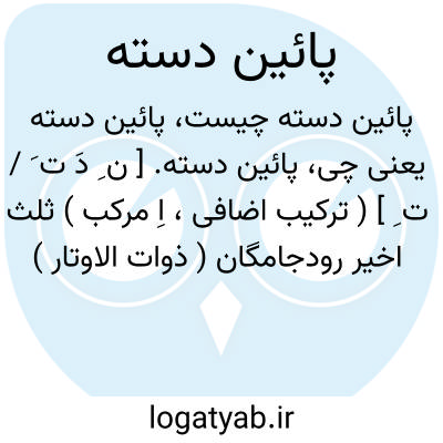 پائین دسته. [ ن ِ دَ ت َ / ت ِ ] ( ترکیب اضافی، اِ مرکب ) ثلث اخیر رودجامگان ( ذوات الاوتار ) بالای نیم کاسه یا کاسه.
