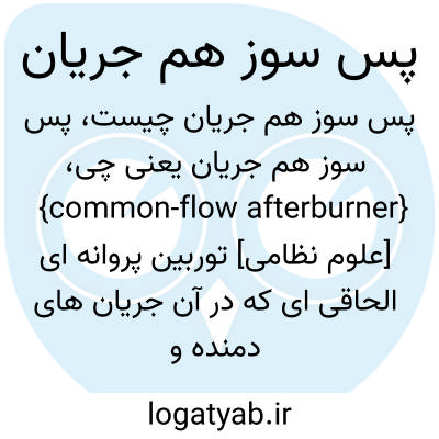 {common-flow afterburner} [علوم نظامی] توربین پروانه ای الحاقی ای که در آن جریان های دمنده و هسته با جریان بالادستی پس سوز ترکیب می شوند
