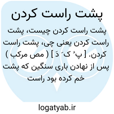 پشت راست کردن. [ پ ُ ک َ دَ ] ( مص مرکب ) پس از نهادن باری سنگین که پشت خم کرده بود راست ایستادن. || از صعوبت و سختی رهائی یافتن.