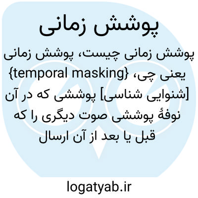 {temporal masking} [شنوایی شناسی] پوششی که در آن نوفۀ پوششی صوت دیگری را که قبل یا بعد از آن ارسال شده است پوشش می دهد