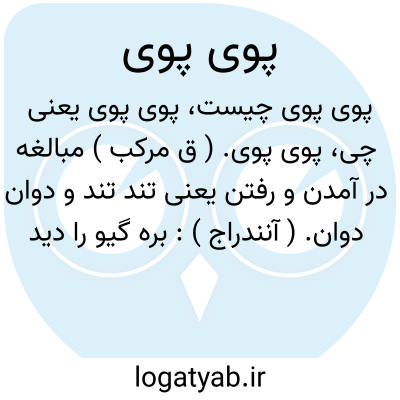 مبالغه در پوی ( پوییدن ) تند تند دوان دوان: [ نبد راه بر کوه از هیچ روی بگشتم بسی گرد او پوی پوی.] ( فردوسی )