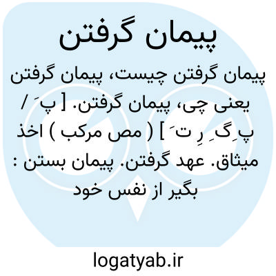 پیمان گرفتن. [ پ َ / پ ِگ ِ رِ ت َ ] ( مص مرکب ) اخذ میثاق. عهد گرفتن. پیمان بستن: بگیر از نفس خود پیمان به آن قسمی که فرستاده شده است بسوی تو. ( تاریخ بیهقی چ ادیب ص 313 ). یا واگذارم چیزی را از آنها که پیمان گرفته ام...ایمان نیاورده ام بقرآن بزرگ. ( تاریخ بیهقی ص 318 ).