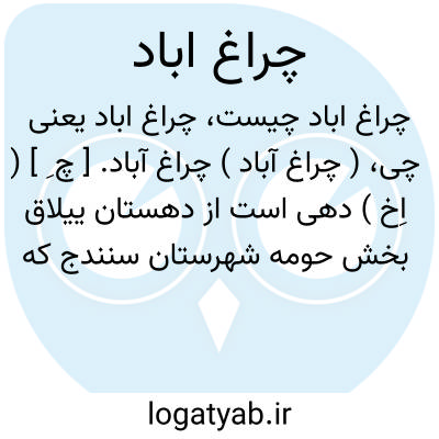 ( چراغ آباد ) چراغ آباد. [ چ ِ ] ( اِخ ) دهی است از دهستان ییلاق بخش حومه شهرستان سنندج که در 38هزارگزی جنوب خاوری سنندج که در 9هزارگزی جنوب راه شوسه سنندج به همدان واقع شده. دامنه و سردسیر است و 370 تن سکنه دارد. آبش از چشمه محصولش غلات، شغل اهالی زراعت و گله داری، صنایع دستی زنان بافتن قالیچه، گلیم و جاجیم و راهش مالرو است. ( از فرهنگ جغرافیایی ایران ج 5 ).