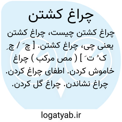 چراغ کشتن. [ چ َ / چ ِ ک ُ ت َ ] ( مص مرکب ) چراغ خاموش کردن. اطفای چراغ کردن. چراغ نشاندن. چراغ گل کردن. چراغ پف کردن. خاموش کردن چراغ. ( ناظم الاطباء ):
