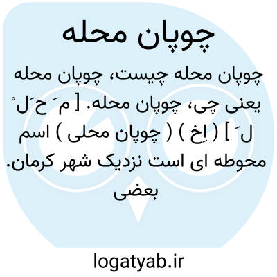 چوپان محله. [ م َ ح َل ْ ل َ ] ( اِخ ) ( چوپان محلی ) اسم محوطه ای است نزدیک شهر کرمان. بعضی گوسفنددارها در آنجا هستند که شیر و ماست گوسفندان خود را بشهر آورده میفروشند. ( مرآت البلدان ج 4 ص 276 ).
