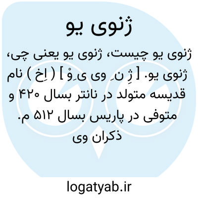 ژنوی یو. [ ژِ ن ِ وی ی ِوْ ] ( اِخ ) نام قدیسه متولد در نانتر بسال 420 و متوفی در پاریس بسال 512 م. ذکران وی سوم ژانویه است. او با آتیلای خونخوار معروف معاصر بود وسکنه پاریس را امیدوار ساخت که از خطر هجوم وی مصون خواهند ماند و از قضا این پیش بینی به صحت پیوست.