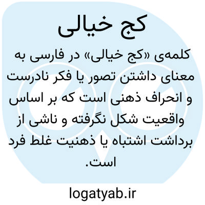 کلمه‌ی «کج‌ خیالی» در فارسی به معنای داشتن تصور یا فکر نادرست و انحراف ذهنی است که بر اساس واقعیت شکل نگرفته و ناشی از برداشت اشتباه یا ذهنیت غلط فرد است. این واژه معمولاً برای توصیف ایده‌ها، تصورات یا قضاوت‌هایی به کار می‌رود که از حقیقت فاصله دارند و باعث برداشت‌های نادرست یا سوءتفاهم می‌شوند. کج‌ خیالی می‌تواند در زمینه‌های شخصی، اجتماعی یا روان‌شناختی مشاهده شود و نشان‌دهنده عدم دقت، خطای ذهنی یا پیش‌داوری فرد است. این مفهوم با مفاهیمی مانند خیال‌بافی نادرست، برداشت اشتباه، تصور غلط و پیش‌داوری هم‌معنی است و اغلب بار منفی دارد. به طور کلی، «کج‌ خیالی» اشاره به وضعیتی دارد که در آن ذهن فرد از واقعیت فاصله گرفته و برداشت یا تصور نادرستی شکل گرفته است، که می‌تواند پیامدهای فکری یا رفتاری نامطلوب داشته باشد.