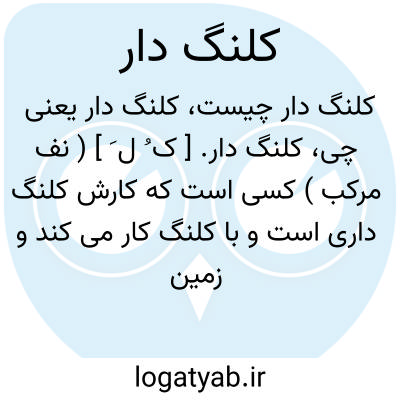 کلنگ دار. [ ک ُ ل َ ] ( نف مرکب ) کسی است که کارش کلنگ داری است و با کلنگ کار می کند و زمین را می کند. ( آنندراج ذیل کلنگ ).آنکه کلنگ بکار برد. کلندگر. ( فرهنگ فارسی معین ). کلنددار. ( یادداشت به خط مرحوم دهخدا ): و مرد بیل دار و کلنگ دار جهت کار قلعه بر ممالک آذربایجان رقم شد. ( عالم آرای عباسی، از فرهنگ فارسی معین ).