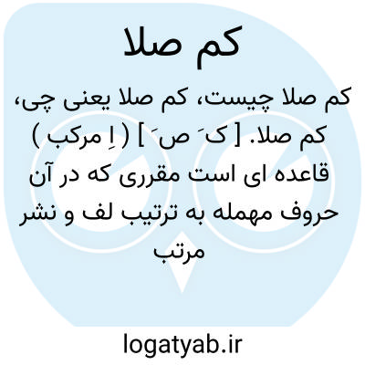 کم صلا. [ ک َ ص َ ] ( اِ مرکب ) قاعده ای است مقرری که در آن حروف مهمله به ترتیب لف و نشر مرتب تغییر می دهند و معجمه به حال خود می گذارند و آن این است: