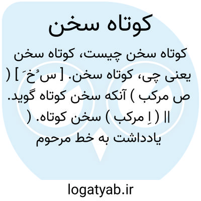 کوتاه سخن. [ س ُخ َ ] ( ص مرکب ) آنکه سخن کوتاه گوید. || ( اِ مرکب ) سخن کوتاه. ( یادداشت به خط مرحوم دهخدا ).