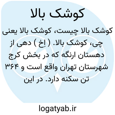 کوشک بالا. ( اِخ ) دهی از دهستان ارنگه که در بخش کرج شهرستان تهران واقع است و 364 تن سکنه دارد. در این دهستان امامزاده ای است. ( از فرهنگ جغرافیایی ایران ج 1 ).