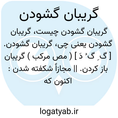 ( مصدر ) باز کردن گریبان. یا گریبان گشادن گل. شکفته شدن گل: اکنون که گشاد گل گریبان دست من و دامن گلستان. ( خاقانی ) یا گوی گریبان گشادن. ۱ - باز کردن دگم. گریبان. ۲ - با آغوش باز پذیرفتن: با اهل هنر گوی گریبان بگشای وز نااهلان تمام دامن درکش. ( حافظ )