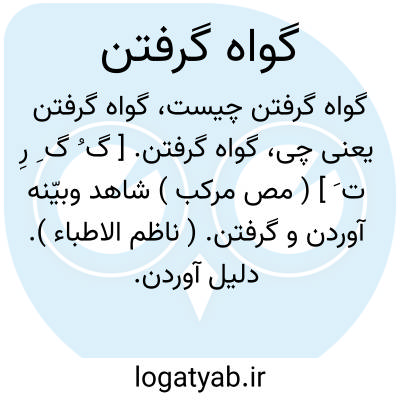 ( مصدر ) ۱ - شاهد قرار دادن کسی را گواه کردن:... و پس بر آن خط خویش نبشت و بوسهل را گواه گرفت. ۲ - دلیل آوردن بینه آوردن.