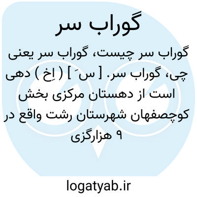 گوراب سر. [ س َ ] ( اِخ ) دهی است از دهستان مرکزی بخش کوچصفهان شهرستان رشت واقع در 9 هزارگزی باختر کوچصفهان در طرفین شوسه کوچصفهان به رشت. جلگه و معتدل مرطوب مالاریایی است. سکنه آن 940 تن است. آب آن از خمام رود ازسفیدرود تأمین میشود. محصول آن برنج، ابریشم، صیفی و شغل اهالی زراعت و راه آن مالرو است. 5 باب دکان سر راه شوسه دارد. ( از فرهنگ جغرافیایی ایران ج 2 ).