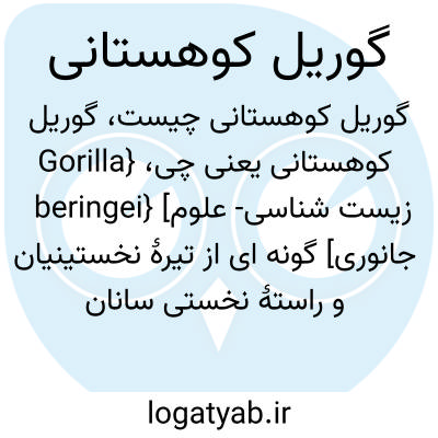 {Gorilla beringei} [زیست شناسی- علوم جانوری] گونه ای از تیرۀ نخستینیان و راستۀ نخستی سانان که بزرگ ترین نخستی خشکی زی است و بیشترین دوشکلی جنسی در آن دیده می شود؛ موها در ابتدا کاملاً سیاه است و ممکن است ظاهری پشمالو داشته باشند