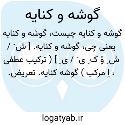 گوشه و کنایه. [ ش َ / ش ِ وُ ک ِ ی َ / ی ِ ] ( ترکیب عطفی، اِ مرکب ) گوشه کنایه. تعریض. حرفهای گوشه دار. رجوع به گوشه کنایه شود.