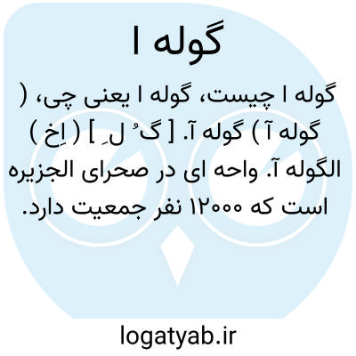 ( گوله آ ) گوله آ. [ گ ُ ل ِ ] ( اِخ ) الگوله آ. واحه ای در صحرای الجزیره است که 12000 نفر جمعیت دارد.
