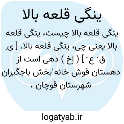 ینگی قلعه بالا. [ ی ِ ق َ ع َ ] ( اِخ ) دهی است از دهستان قوش خانه ٔبخش باجگیران شهرستان قوچان، واقع در 75000گزی شمال باختری باجگیران، با 331 تن سکنه. آب آن از چشمه و راه آن مالرو است. ( از فرهنگ جغرافیایی ایران ج 9 ).