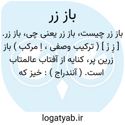 باز زر. [ زِ زَ ] ( ترکیب وصفی، اِ مرکب ) باز زرین پر، کنایه از آفتاب عالمتاب است. ( آنندراج ):