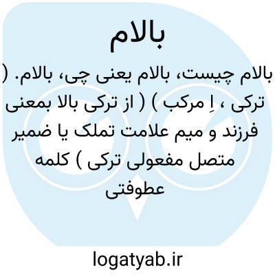 بالام. ( ترکی، اِ مرکب ) ( از ترکی بالا بمعنی فرزند و میم علامت تملک یا ضمیر متصل مفعولی ترکی ) کلمه عطوفتی است که کوچکتران و زیردستان را بدان آواز دهند. ( یادداشت مؤلف ). || تکیه کلامی زنان را در خطاب بیکدیگر. || بمزاح، قزوینی چه قزوینیان بتقلید ترکان اطفال و زیردستان و یا اکفاءو اقران را بالام خطاب کنند. رجوع به بالامجان شود.