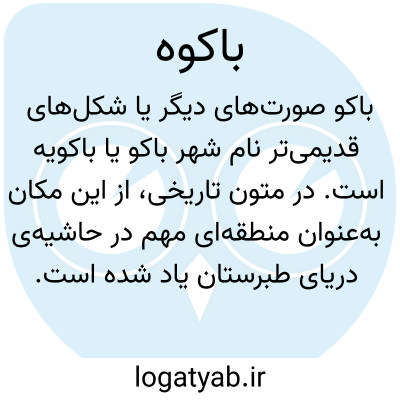 باکو ظاهراً صورتهای دیگر یا شکلهای قدیمیترِ نام شهر باکو یا باکویه است. در متون تاریخی، از این مکان بهعنوان منطقهای مهم در حاشیهی دریای طبرستان (خزر) یاد شده که به دلیل منابع طبیعی ویژهاش شناخته میشده است. بر اساس آنچه مؤلف کتاب مجملالتواریخ و القصص آورده است، در دریای طبرستان دو جزیرهی هماندازه وجود داشته که یکی از آنها در نزدیکی طبرستان قرار داشته و از نعمتهای فراوان برخوردار بوده، اما به مرور زمان بر اثر پیشروی آب دریا به زیر آب رفته است. جزیرهی دوم نیز جزیرهای به نام باکو بوده است. مردم از این جزیره نفت سفید و نفت سیاه استخراج میکردهاند. همچنین، ویژگیِ منحصربهفرد این منطقه، جنبش و لرزش دائمِ زمین آن ذکر شده که سبب خروج آتش از زمین میگردیده است. این توصیف با واقعیتهای طبیعی منطقه، از جمله خروج گاز و پدیدهی آتشافروزی خودبهخودی که تا به امروز نیز در برخی نقاط باکو مشاهده میشود، مطابقت دارد.