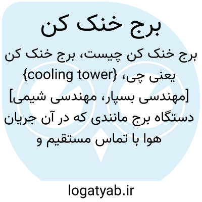 {cooling tower} [مهندسی بسپار، مهندسى شیمى] دستگاه برج مانندی که در آن جریان هوا با تماس مستقیم و در فشار جوّ آب گرم را خنک می کند