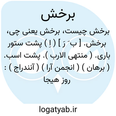 برخش. [ ب َ رَ ] ( اِ ) پشت ستور باری. ( منتهی الارب ). پشت اسب. ( برهان ) ( انجمن آرا ) ( آنندراج ):