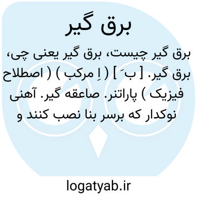 برق گیر. [ ب َ ] ( اِ مرکب ) ( اصطلاح فیزیک ) پاراتنر. صاعقه گیر. آهنی نوکدار که برسر بنا نصب کنند و بوسیله آن ساختمانها را از اثر صاعقه محفوظ دارند. مخترع آن فرانکلین آمریکائی است.اساس آن میله طویلی است از آهن که آنرا بر فراز عمارت نصب کنند و این میله بتوسط زنجیری از تمام قسمتهای آهن دار عمارت میگذرد و وارد چاهی میشود و بزمین مربوط میگردد و چون ابری که الکتریسته آن مخالف الکتریسته زمین است از مقابل نوک میله بگذرد بواسطه خاصیت مجاورت الکتریسته آن وارد زمین می شود و اگر اتفاقاً صاعقه هم وقوع پیدا کند متوجه نوک میشود و بنا محفوظ میماند. و رجوع به دائرة المعارف فارسی شود.