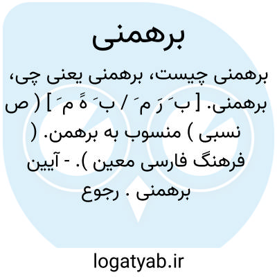 برهمنی. [ ب َ رَ م َ / ب َ هََ م َ ] ( ص نسبی ) منسوب به برهمن. ( فرهنگ فارسی معین ).