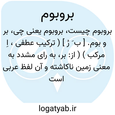 بر و بوم. [ ب َ رُ ] ( ترکیب عطفی، اِ مرکب ) ( از: بر، به رای مشدد به معنی زمین ناکاشته و آن لفظ عربی است + بوم، به معنی زمین کاشته یعنی زمین قابل زراعت و ناقابل که سستی پذیرد ) ( از آنندراج ). بوم و بر. وطن. سرزمین. بنگاه: