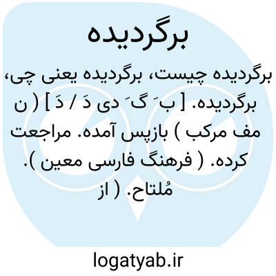 برگردیده. [ ب َ گ َ دی دَ / دَ ] ( ن مف مرکب ) بازپس آمده. مراجعت کرده. ( فرهنگ فارسی معین ). مُلتاح. ( از منتهی الارب ). || انتقال یافته ( به حالی ). ( فرهنگ فارسی معین ). منتقل شده. || واژگون شده. درغلطیده. ( ناظم الاطباء ): اعتکاس، انعکاس؛ برگردیده شدن.( از منتهی الارب ). || تغییریافته. متغیر. ( فرهنگ فارسی معین ). تغییرداده شده. ( ناظم الاطباء ).