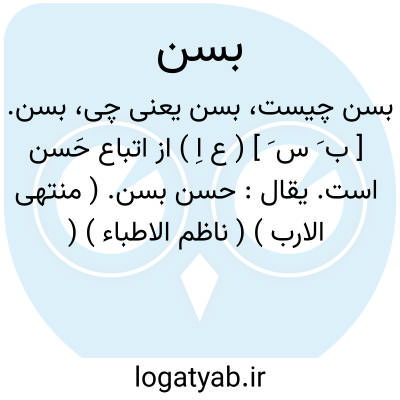 بسن. [ ب َ س َ ] ( ع اِ ) از اتباع حَسن است. یقال: حسن بسن. ( منتهی الارب ) ( ناظم الاطباء ) ( آنندراج ) ( دزی ج 1 ص 87 ). و در فارسی حسن مسن گویند. || سنگ افسان. ( یادداشت مؤلف ).