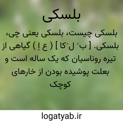 بلسکی. [ ب َ ل َکا ] ( ع اِ ) گیاهی از تیره روناسیان که یک ساله است و بعلت پوشیده بودن از خارهای کوچک و قلاب مانند به سهولت به اشیاء مجاور و حتی پشم گوسفندان که از مجاورت آن عبور کنند می چسبد. برگهای این گیاه فراهم ( بصورت شش تایی یا هشت تایی ) و نوک تیز و باریک و پوشیده از تارهای قلاب مانند و گلهایش سفید و مجتمع ( که بر روی دم گلی بلندتر از برگها قرار دارند ) است. جوشانده آن بعنوان مدر استعمال میشده. این گیاه در اکثر نقاط ایران میروید. بلشکه. افارین. ارمن. حشیشةالافعی. قوت البریة. مصفی الرعاء. مصفی الراعی. یاپیشقان. قازاوتی. ( فرهنگ فارسی معین ). عکرش. ودود. حب الصبیان. فوه برانیه. بلسک. بلسکاء. و رجوع به بلسک و بلسکاء شود.