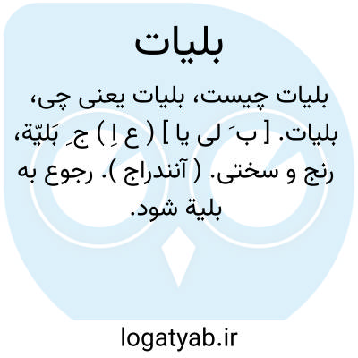 بلیات. [ ب َ لی یا ] ( ع اِ ) ج ِ بَلیّة، رنج و سختی. ( آنندراج ). رجوع به بلیة شود.