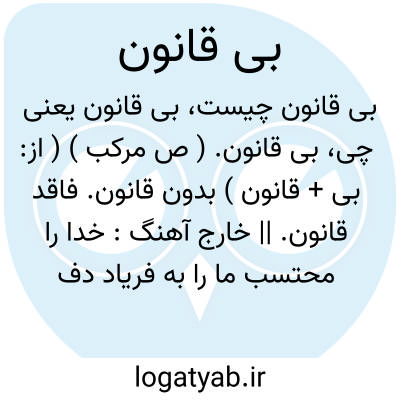 بی قانون. ( ص مرکب ) ( از: بی + قانون ) بدون قانون. فاقد قانون. || خارج آهنگ: