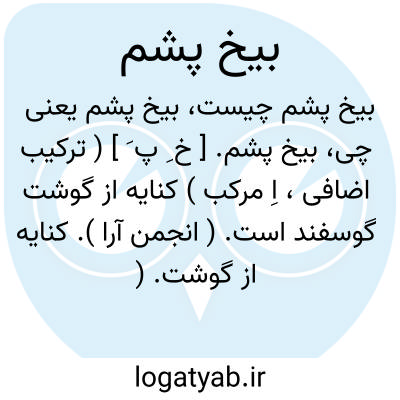 بیخ پشم. [ خ ِ پ َ ] ( ترکیب اضافی، اِ مرکب ) کنایه از گوشت گوسفند است. ( انجمن آرا ). کنایه از گوشت. ( آنندراج ) ( رشیدی ). کنایه از گوشت است که بتازی لحم گویند. ( برهان ). گوشت. ( ناظم الاطباء ):