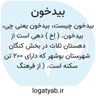 بیدخون. ( اِخ ) دهی است از دهستان ثلاث در بخش کنگان شهرستان بوشهر که دارای 200 تن سکنه است. ( از فرهنگ جغرافیائی ایران ج 7 ).