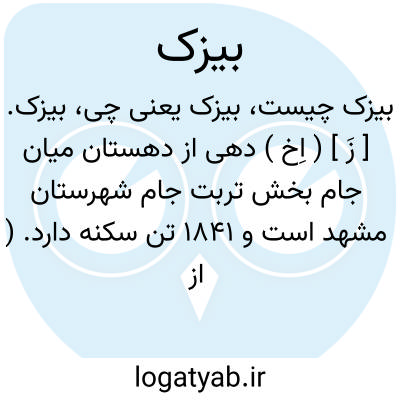 بیزک. [ زَ ] ( اِخ ) دهی از دهستان میان جام بخش تربت جام شهرستان مشهد است و 1841 تن سکنه دارد. ( از فرهنگ جغرافیایی ایران ج 9 ). دیه برزه که آنرا بیزک خوانند. ( تاریخ بیهق ص 211 ).