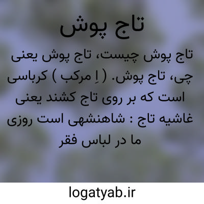 تاج پوش. ( اِ مرکب ) کرباسی است که بر روی تاج کشند یعنی غاشیه تاج: