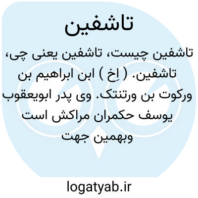تاشفین. ( اِخ ) ابن ابراهیم بن ورکوت بن ورتنتک. وی پدر ابویعقوب یوسف حکمران مراکش است وبهمین جهت خاندان وی را که به امارت رسیده اند، بنی تاشفین هم نامیده اند. مؤلف قاموس الاعلام ترکی در ترجمه بنی تاشفین آرد: نام یکی از فروع دولت مرابطین است که در اواسط قرن پنجم هجری در مغرب اقصی حکمرانی می کردند. اول پادشاهشان یوسف بن تاشفین بود... و پس از وی پسرش علی جانشین او شد.این یکی هم پسرش تاشفین را به اندلس فرستاد وی نیز ببعض فتوحات نائل گردید و در اواخر سلطنتش عبدالمؤمن زناتی ظهور نمود و در همین اوان کوکب اقبال دولت مرابطین افول کرد و سلاله بنی تاشفین منقرض گردید. رجوع به ابویعقوب یوسف بن تاشفین و ابوالحسن علی بن یوسف بن تاشفین و غزالی نامه ص 253 و ص 375 و حبیب السیر چ خیام ج 2 ص 573 و 574 و تاشفین عبدالعزیز ابوعمر شود.