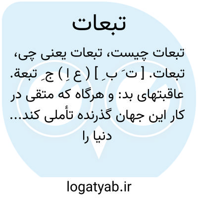 ( اسم ) جمع تبعت ( تبعه ).۱- نتایج و عواقب. ۲- عقوبتهای معاصی جزای گناهان.