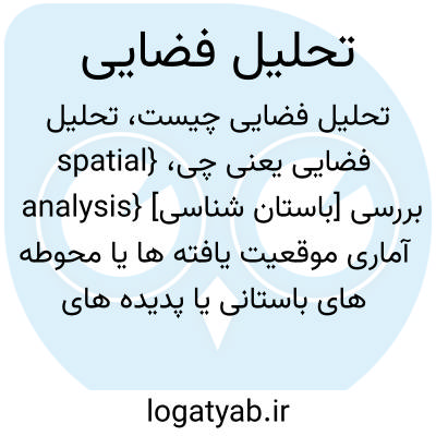 {spatial analysis} [باستان شناسی] بررسی آماری موقعیت یافته ها یا محوطه های باستانی یا پدیده های دیگر، مانند عوارض طبیعی، باتوجه به ارتباط احتمالی آنها با یکدیگر