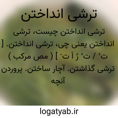 ترشی انداختن. [ ت ُ / ت ُ رُ اَ ت َ ] ( مص مرکب ) ترشی گذاشتن. آچار ساختن. پروردن آنچه از میوه ها در سرکه آچار طعام را. آچار کردن سرکه با سبزیها و میوه ها. ( یادداشت بخط مرحوم دهخدا ). - دختر را ترشی انداختن؛ بمزاح، بشوی ندادن و در خانه داشتن او را. ( یادداشت ایضاً ).